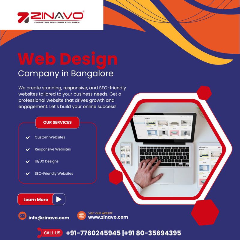 Zinavo is a leading web design agency in Bangalore that offers responsive and creative web design services. We design user-friendly, SEO-friendly, and mobile-friendly websites for businesses of all sizes. Our specializations include developing custom websites, e-commerce websites, content management systems, and web applications. We are committed to helping your business grow online by providing a high level of quality, security, and fast performance. Our web design services include creating engaging and professional designs for corporate websites, portfolios, and e-commerce websites. Through our affordable pricing and reliable customer service, Zinavo makes online success a reality. We can help you develop a beautiful website with Zinavo.