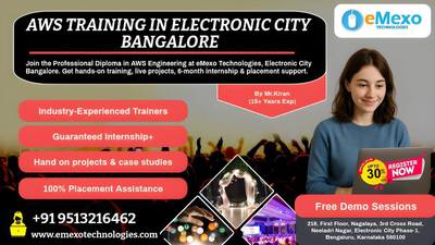 If you’re serious about starting a career in cloud computing, choosing the right place for AWS Training in Electronic City can make all the difference. At eMexo Technologies, we offer a training experience that goes far beyond theory, focusing on practical, hands-on learning with real-world projects. You’ll gain expertise in key AWS services like EC2, S3, Lambda, RDS, and VPC while also building the confidence to design and manage cloud solutions effectively. Our AWS Training in Electronic City is tailored for both beginners and working professionals, ensuring that every learner can grow at their own pace. With expert mentors guiding you step by step, you’ll not only prepare for globally recognized certifications but also for the challenges of modern IT careers. To boost your career prospects, we provide complete placement support — including resume building, interview practice, and direct job referrals. Many of our students have already transitioned into roles such as AWS Cloud Engineer, DevOps Specialist, and Solutions Architect. Every session is designed to be interactive, with case studies and projects that reflect real industry demands. By the time you finish, you’ll be both certification-ready and job-ready. Don’t just learn AWS — master it with eMexo Technologies and unlock your cloud career today.